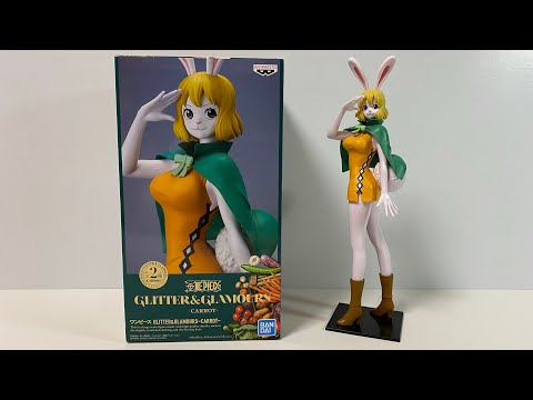The rabbit mink Carrot (from the One Piece anime) joins the Glitter & Glamours figure line. This figure features Carrot in an orange dress and green cape.